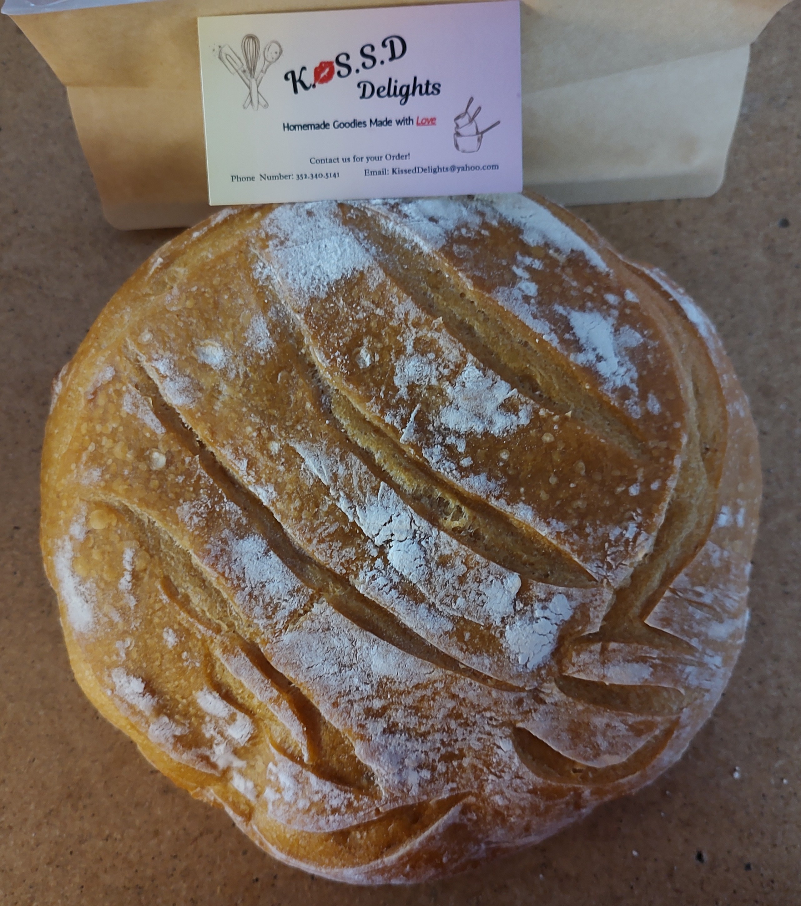 Freshly baked Sourdough Pumpkin bread showcasing a beautifully crafted crust.